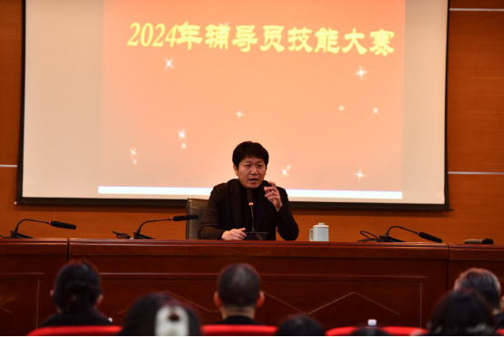 学生处处长向以群在赛后对选手的现场表现进行了逐一点评,对学院领导对本次大赛的高度重视和大力支持,对贯穿整个学期初赛和决赛环节的出题、组织、备赛的工作人员的辛勤付出、对所有评委的公正评判表示衷心感谢。希望全体辅导员像优秀者学习,牢记立德树人使命,继续保持积极向上的精神风貌,做有速度、有高度、有温度的辅导员,为学生的成长成才保驾护航。