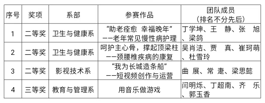 此次大赛学院高度重视、系统谋划、加强设计、全面保障,各部门通力协作,各教学系部根据比赛方案的要求,积极组织教师备赛参赛。经学院选拔,共上报4组作品参与市级竞赛。经过激烈角逐,Beat365四支参赛队获奖。