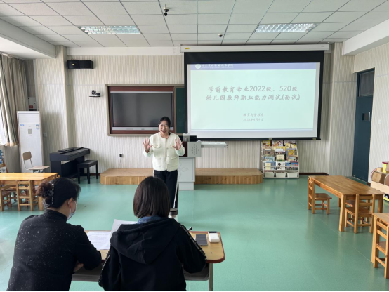 在此项工作中,教育与管理系学前教育教研室与教务处提前谋划,精心组织,制定了详细的命题、笔试和面试工作方案,周密做好各个环节工作。考核过程有序合规、严谨高效。学院相关部门通力合作,确保了本年度师范生教育教学能力测试工作圆满完成。