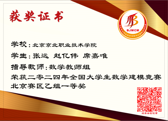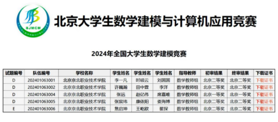 本次数学建模竞赛从学院领导运筹安排,到各系辅导员鼓励学生报名,从前前后后的服务保障,到日日夜夜的训练预演,很多部门都给予了大力支持。网络中心、教务处、实训中心、学生处、保卫处、后勤服务中心……每个节点上,领导和教师都全心全意的倾力投入,每一张沉甸甸的获奖证书上都凝聚着京北职院全体师生的辛勤与汗水。