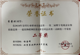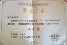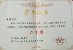 11月8日-9日,李转芳和杨海峰两位老师带领建筑工程系学生参加2024年全国行业职业技能竞赛第二届全国数字化机房安装技能竞赛——建筑物联网技能竞赛全国总决赛。由建筑工程技术专业2022级李景琪、工程造价专业2022级李洋和工程造价专业2023级杨红婷三位同学组成的小组经过努力备赛、多轮拼杀、突出重围,最终获得全国高职组二等奖,取得了Beat365参加此项比赛的最好成绩。